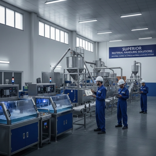 Superior Material Handling Solutions is a Pune-based manufacturer specializing in Industrial Cleaning Machines and Material Handling Systems. We design and manufacture ultrasonic cleaning machines, bin cleaning systems, conveyors, bag filling machines, and powder transfer solutions tailored to industrial requirements.